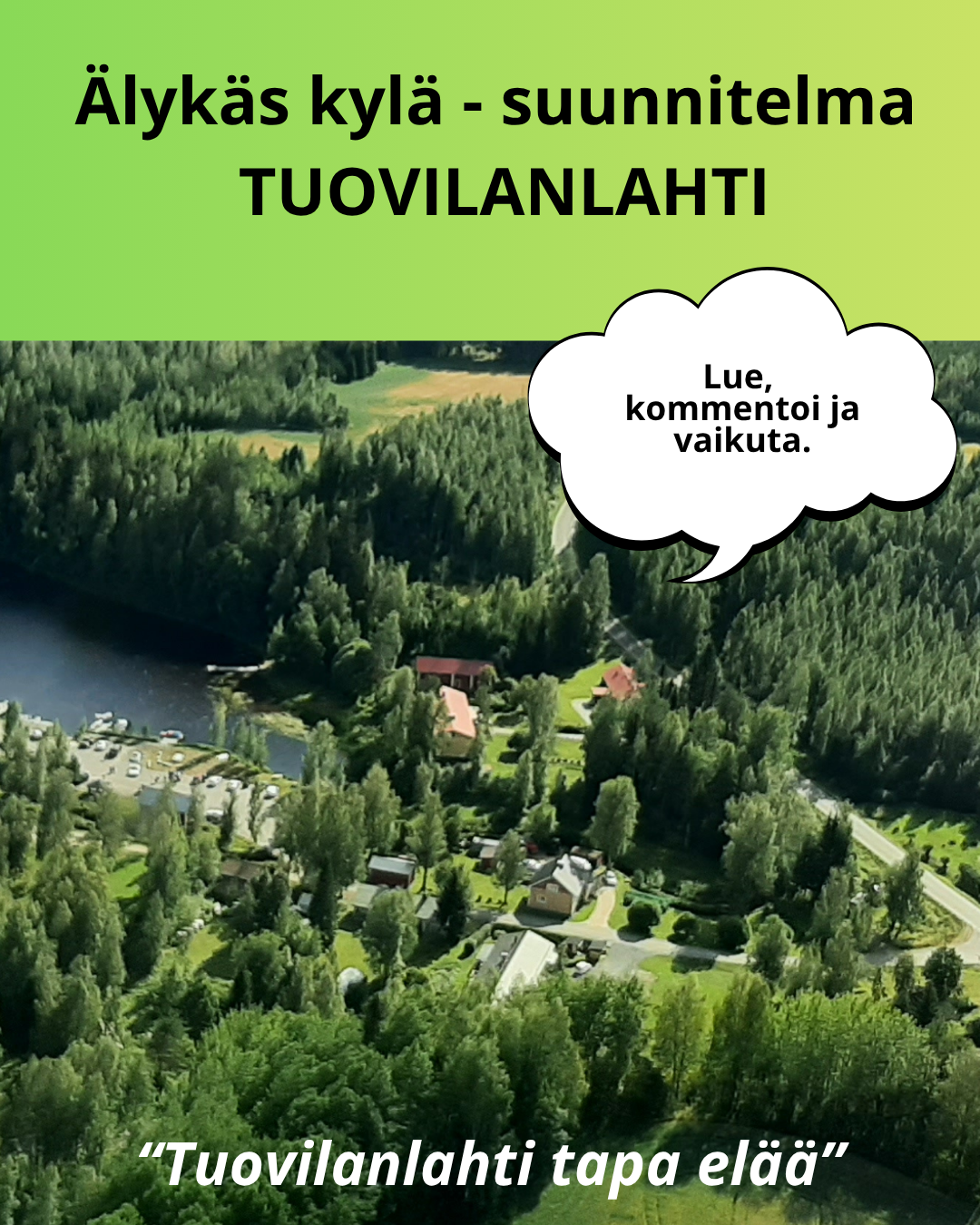 Tuovilanlahden Älykäs kylä -suunnitelma on kommentoitava kyläläisille, kylämme vierailijoille ja yhteistyötahoille ja sidosryhmlle.